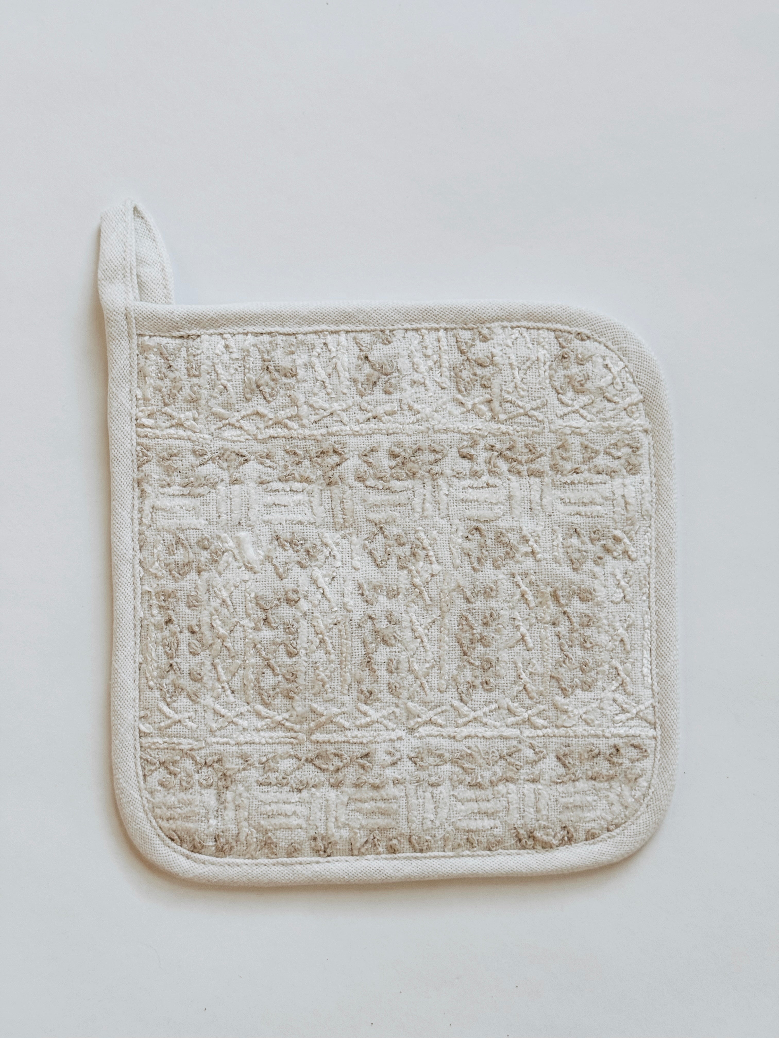 Add a touch of PATINA VIE to your kitchen with this Ivory Embroidered Pot Holder.