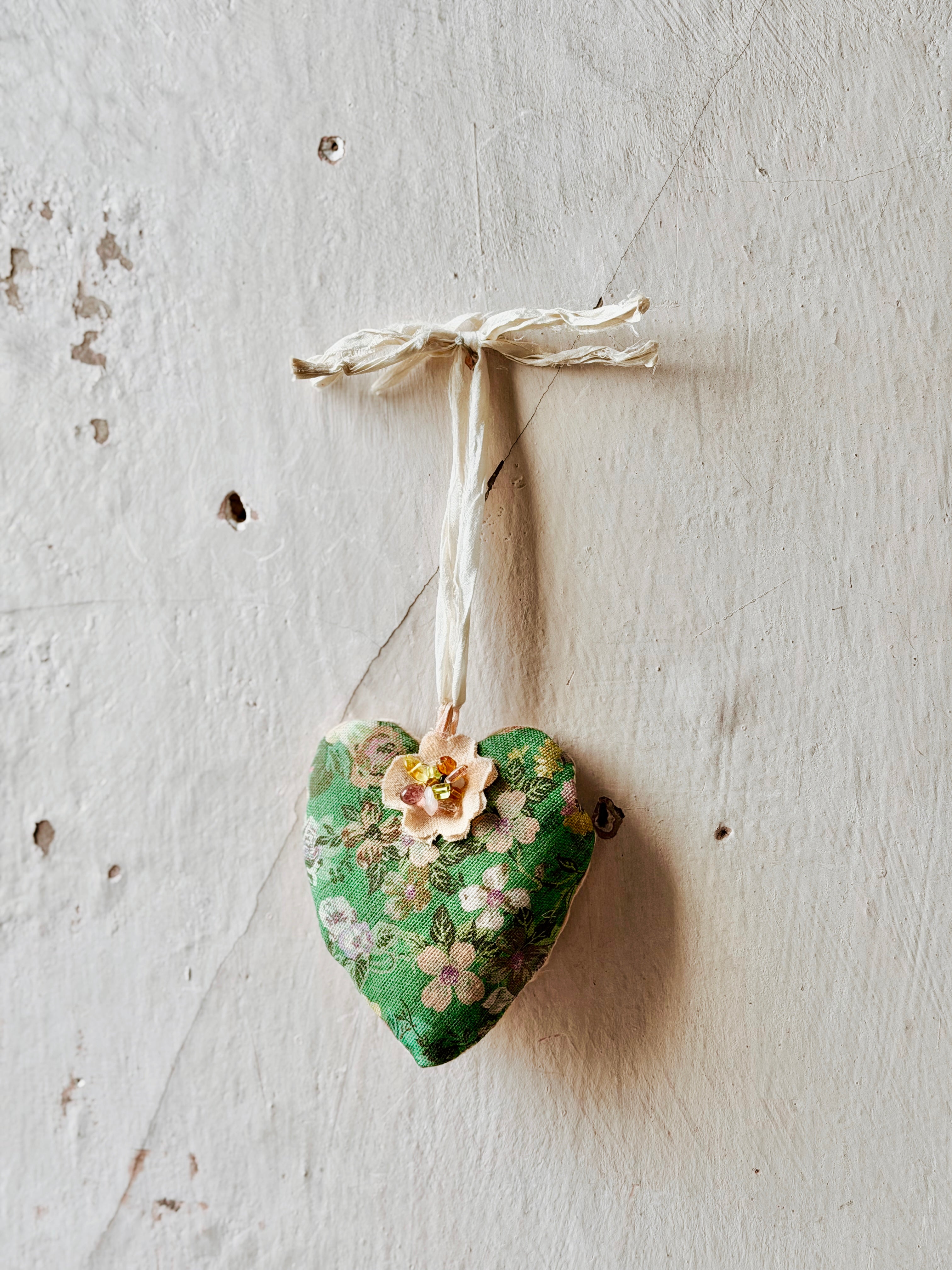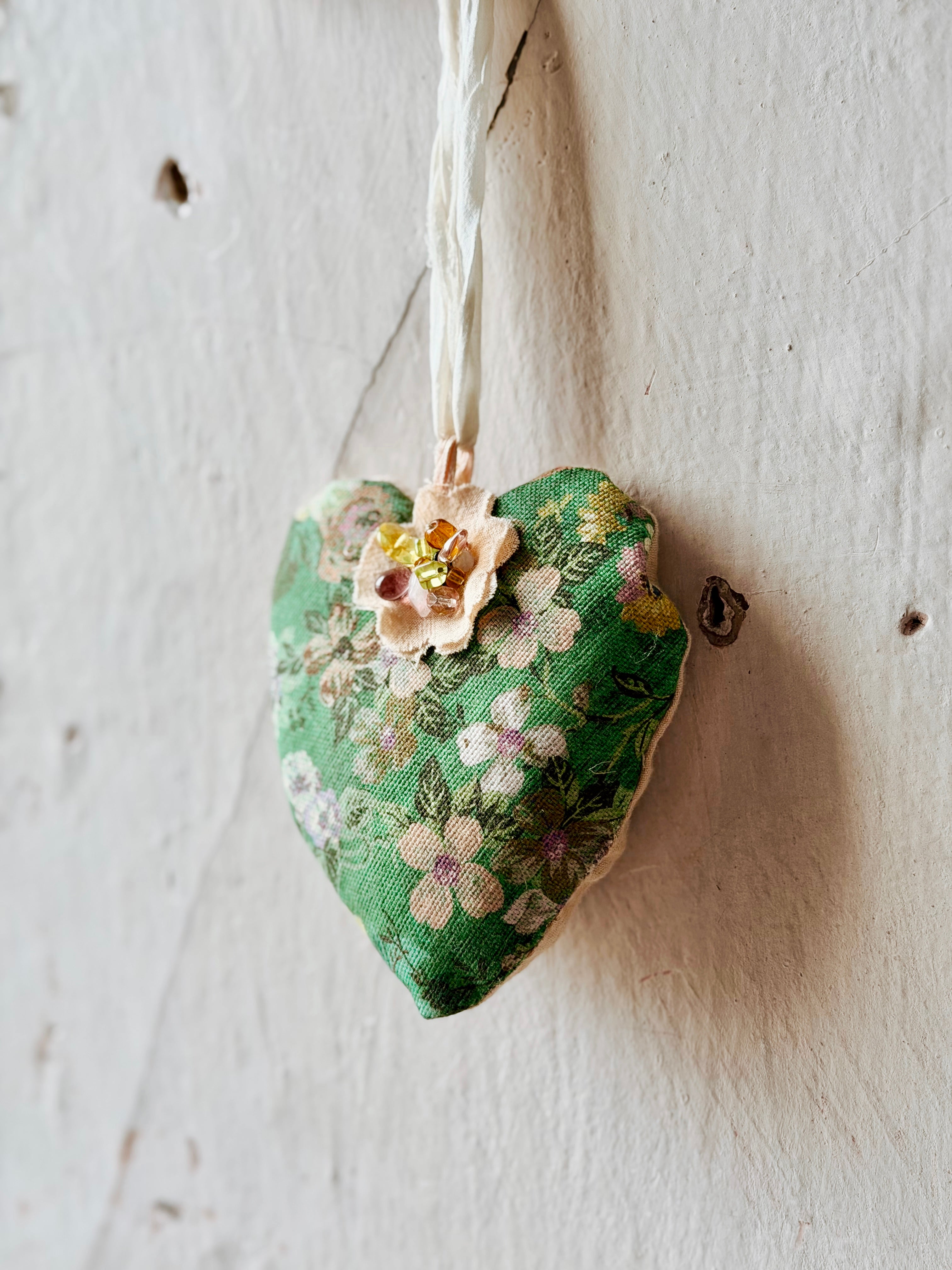 Handmade in our Patina Vie studios, these French-Style Handmade heart sachets are filled with our fragrant French White scent. ( notes of linen, musk, vanilla)