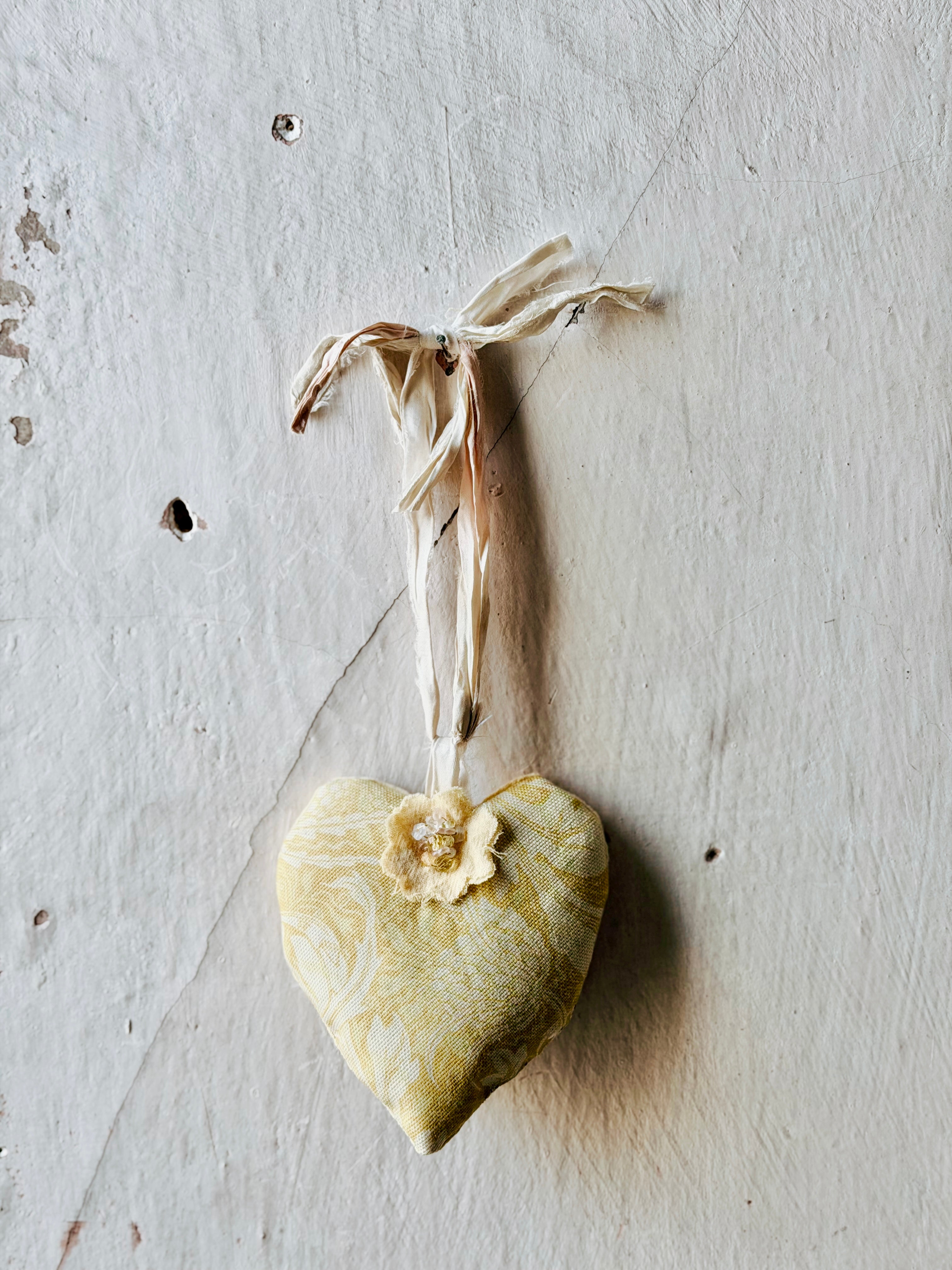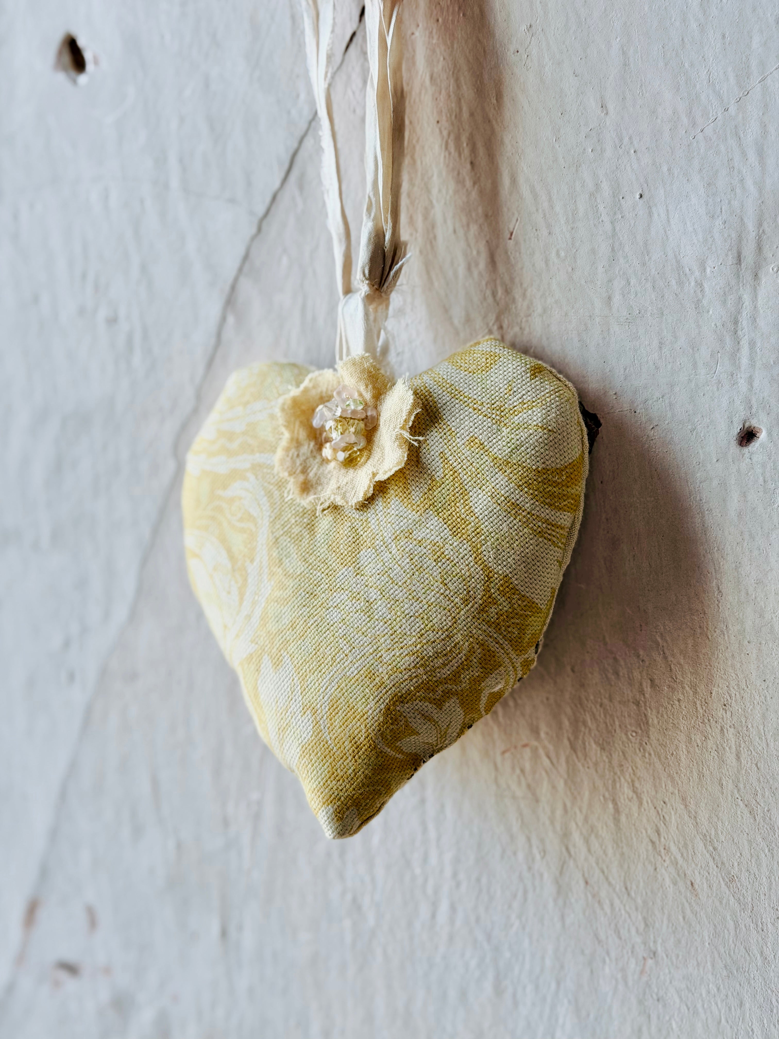 Handmade in our Patina Vie studios, these French-Style Handmade heart sachets are filled with our fragrant French White scent. ( notes of linen, musk, vanilla)