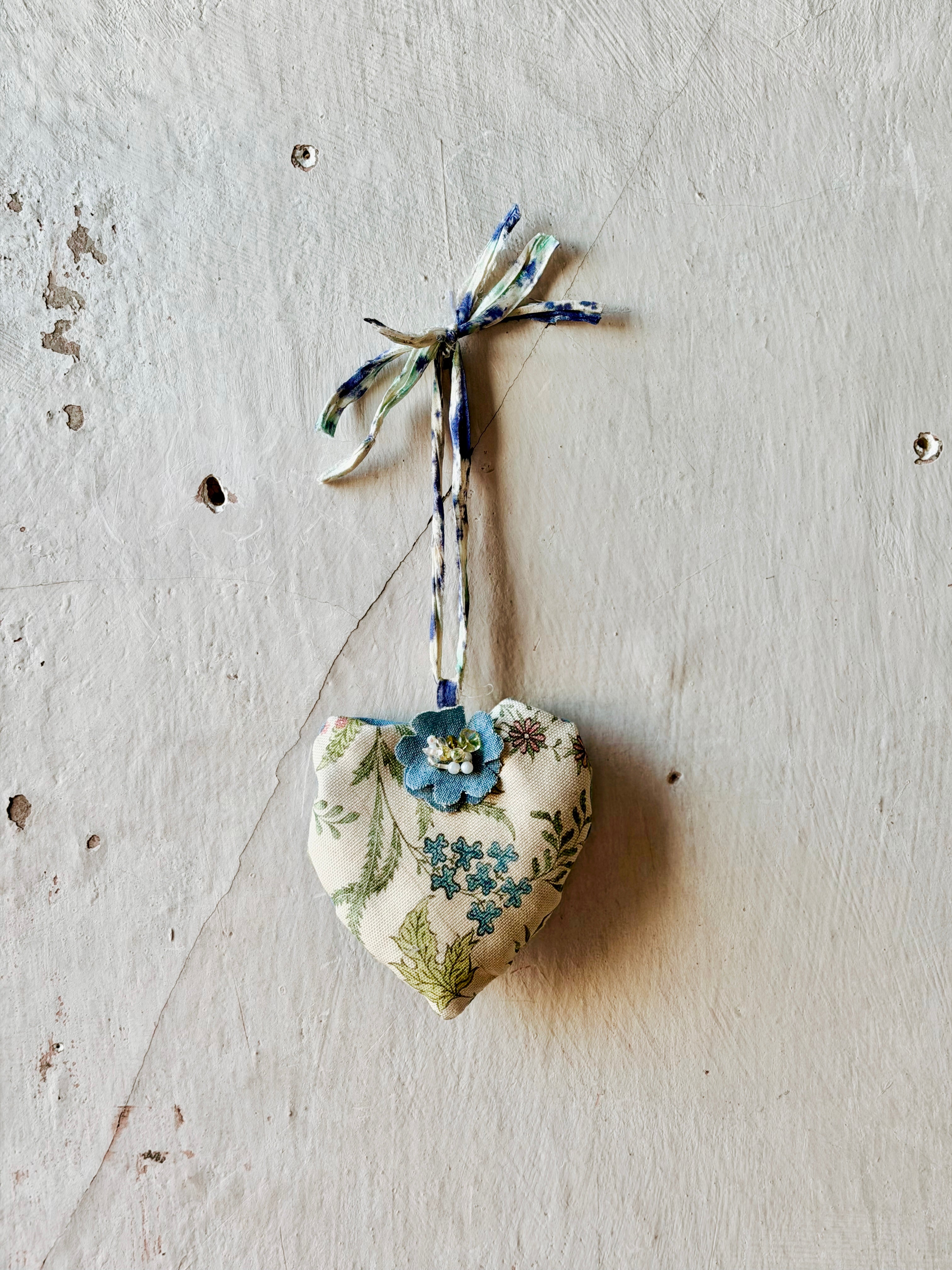 Handmade in our Patina Vie studios, these French-Style Handmade heart sachets are filled with our fragrant French White scent. ( notes of linen, musk, vanilla)