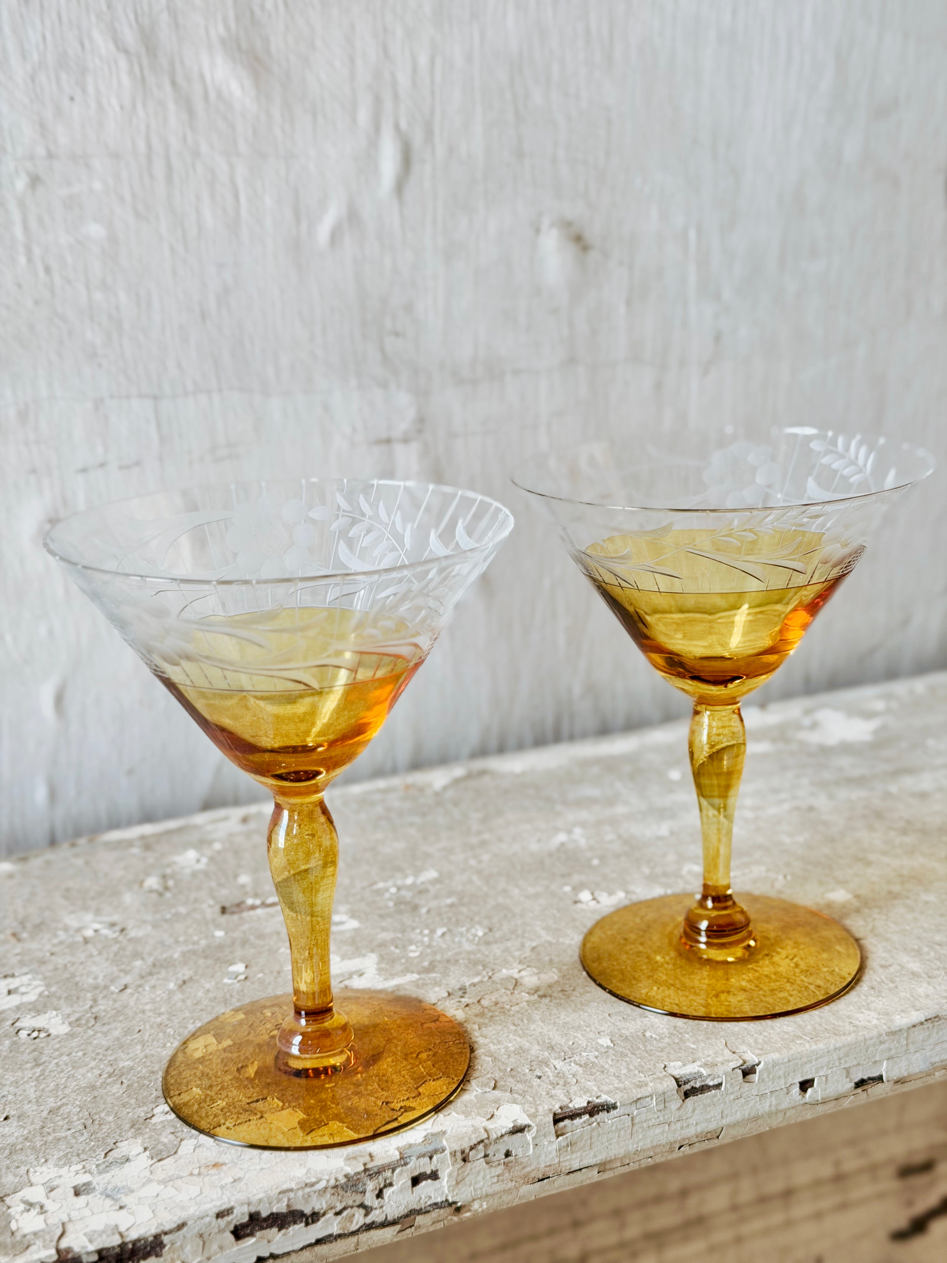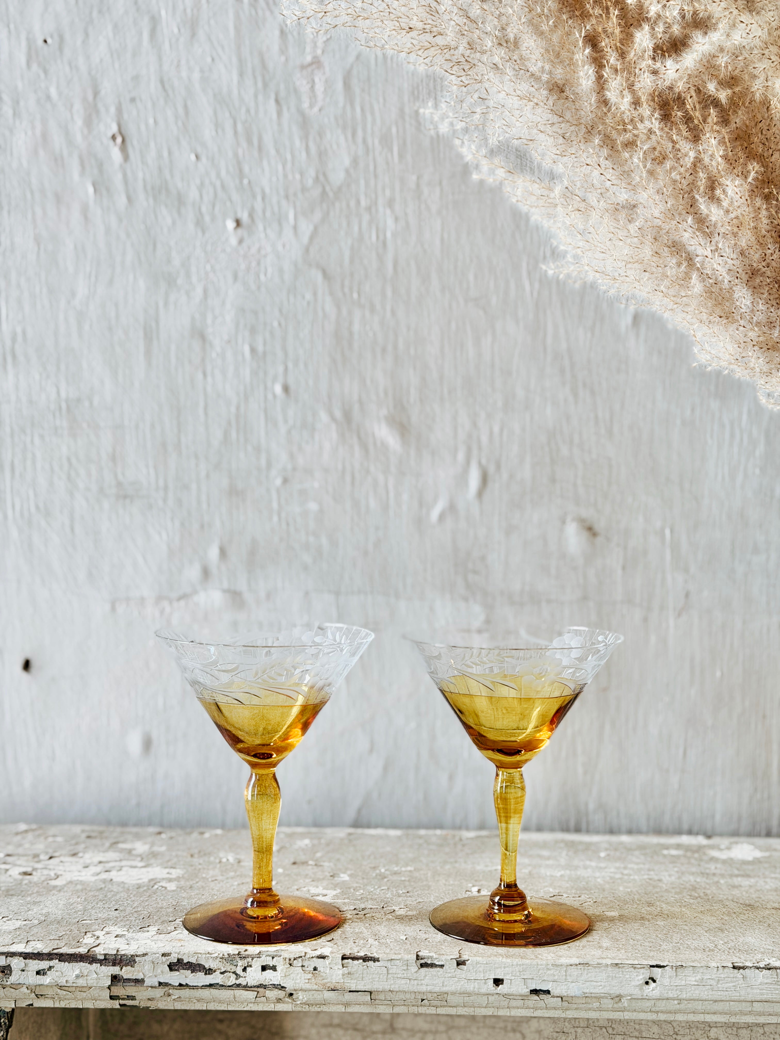 Charming pair of stylish amber martini glasses will bring your next soirée to life...!