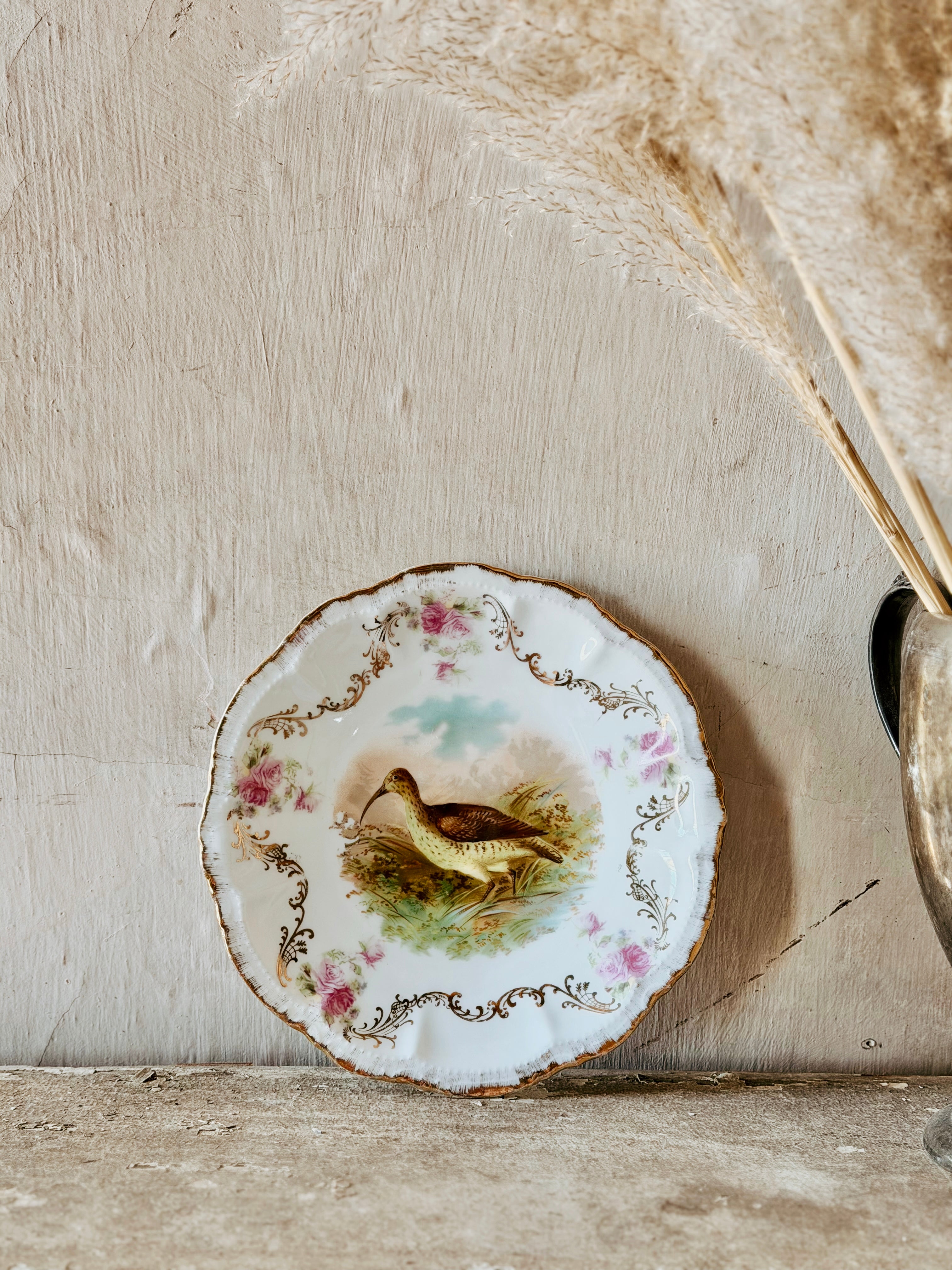 A stunning floral plate adorned with a wild game bird in the center. HISTORY + STYLE COLLIDE