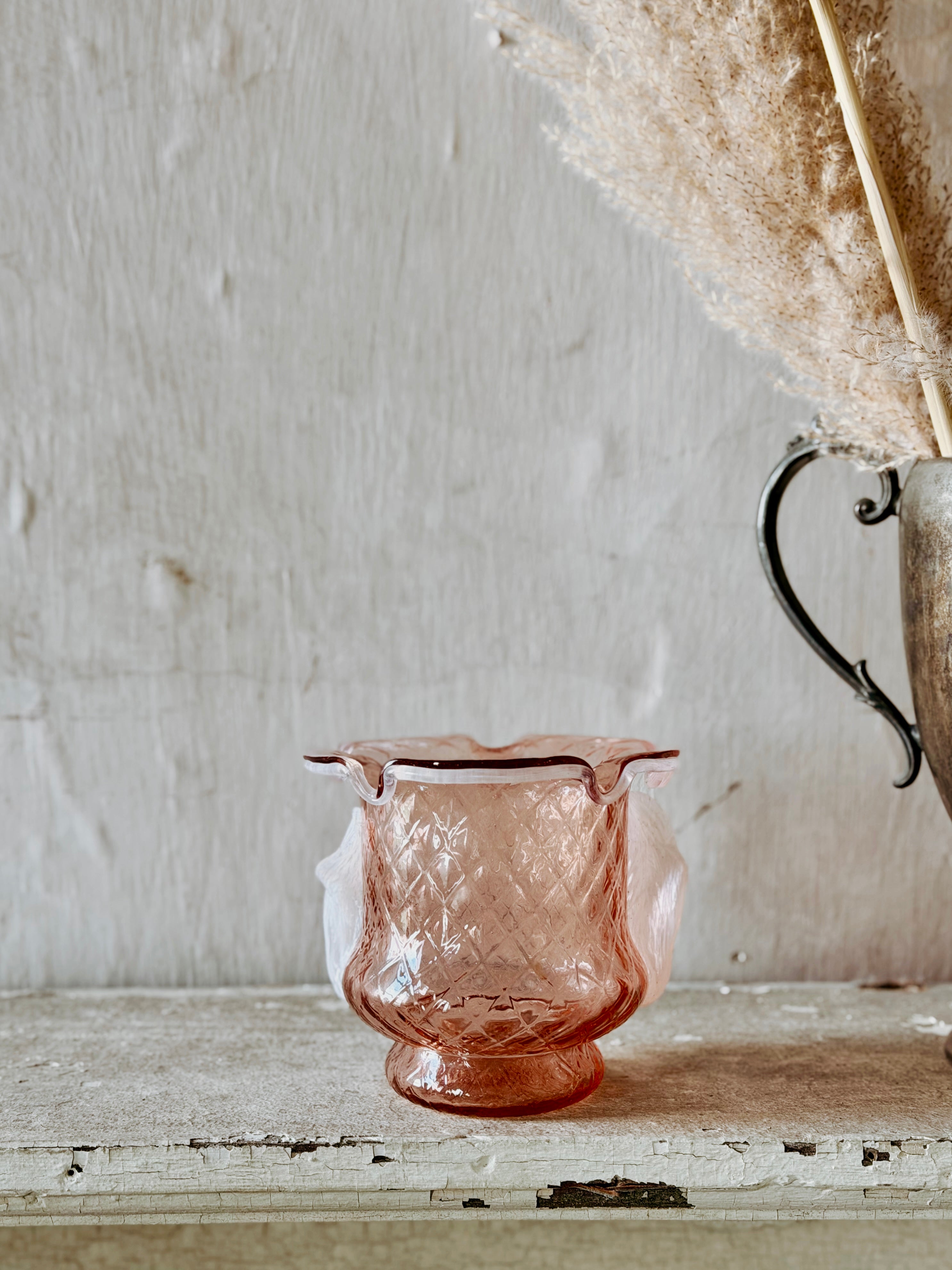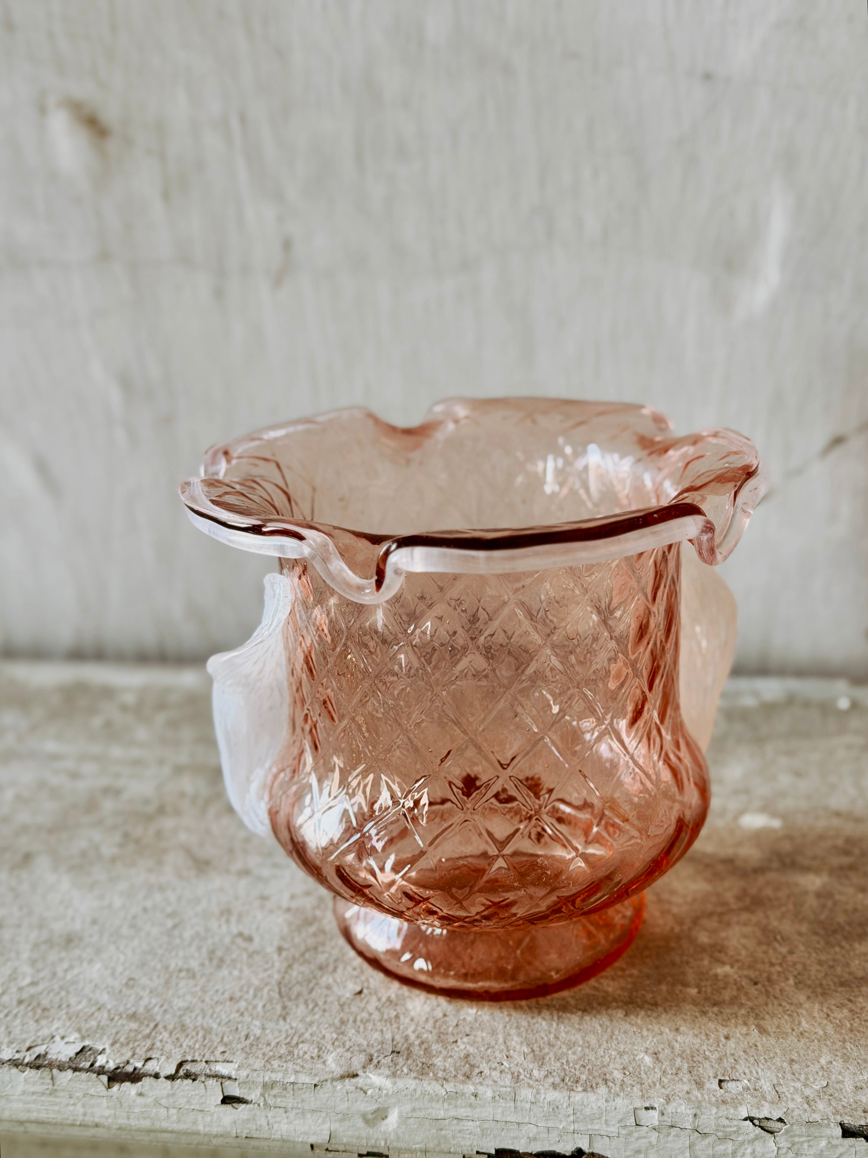 A gorgeous blush vase with a charming quilt pattern. History + Style Collide!
