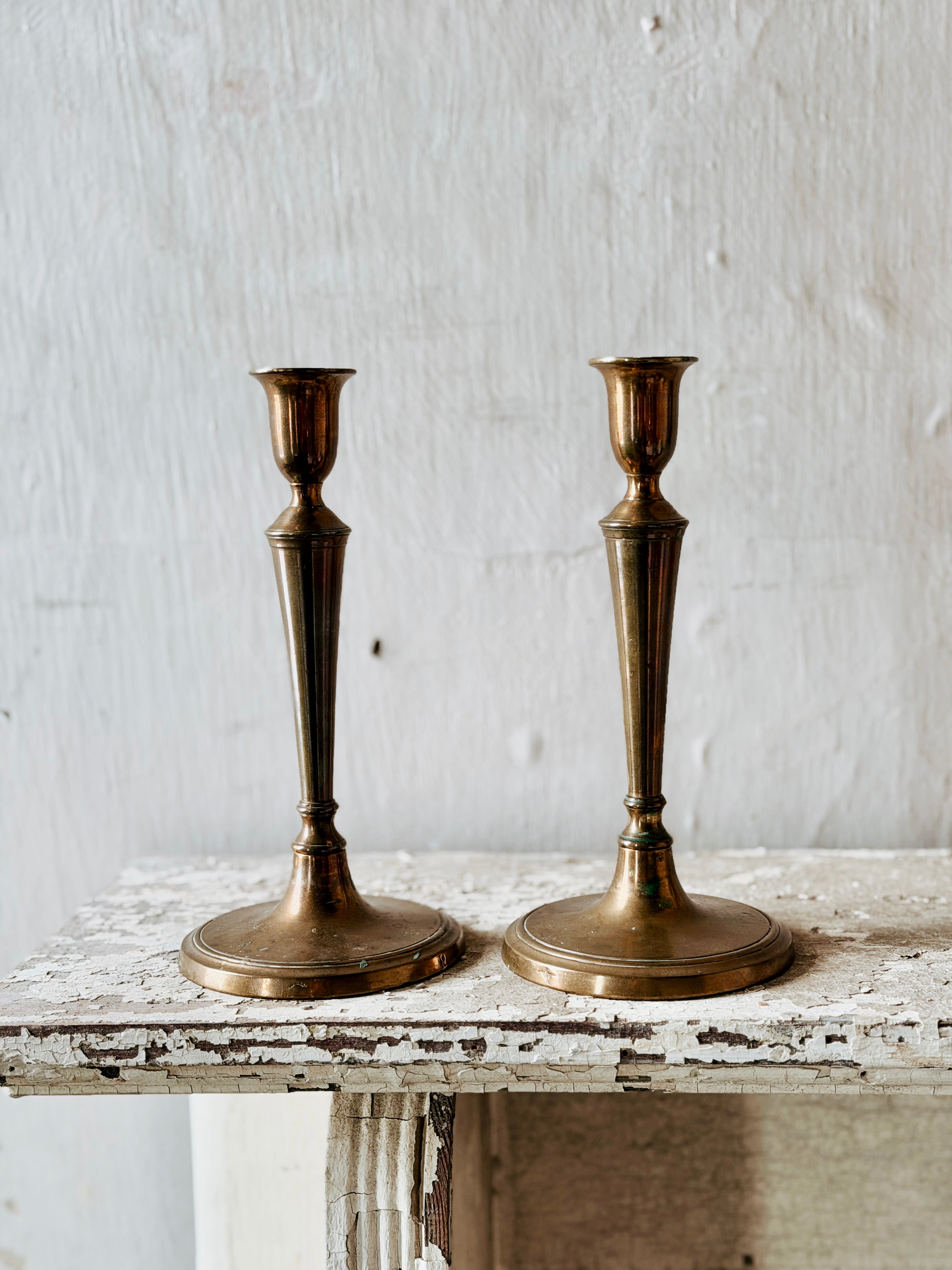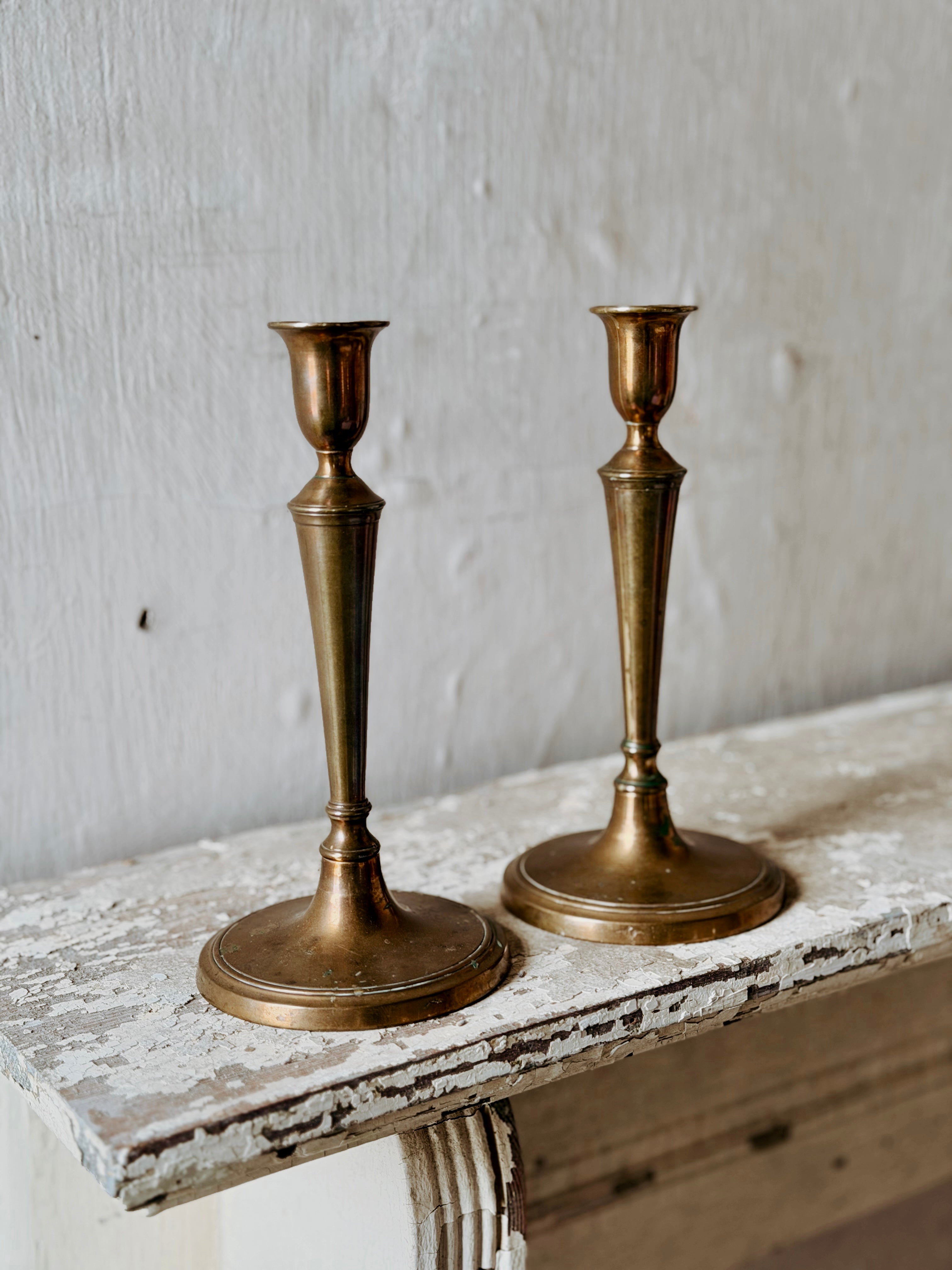 These classic brass candlesticks will add a touch of charm to your home decor. (Features a touch of patina)