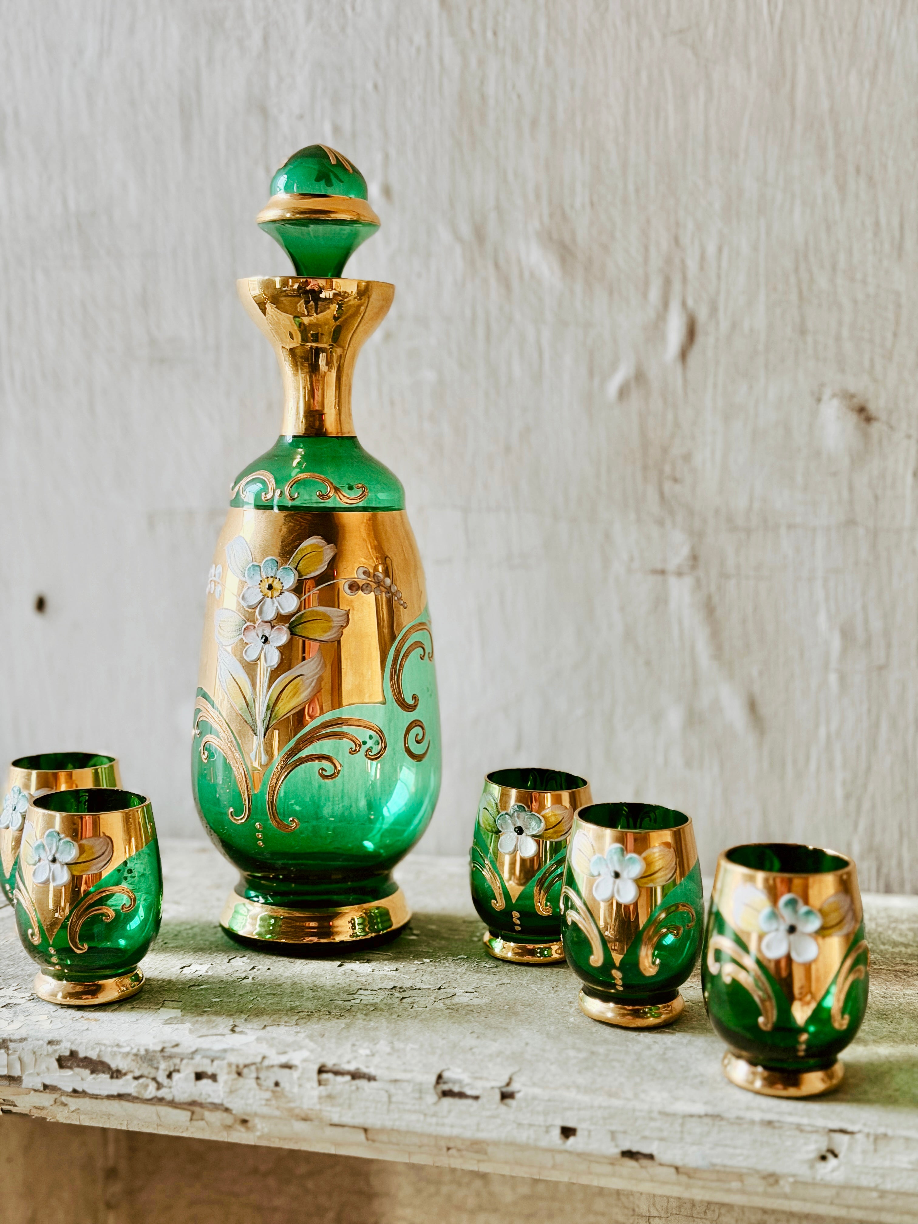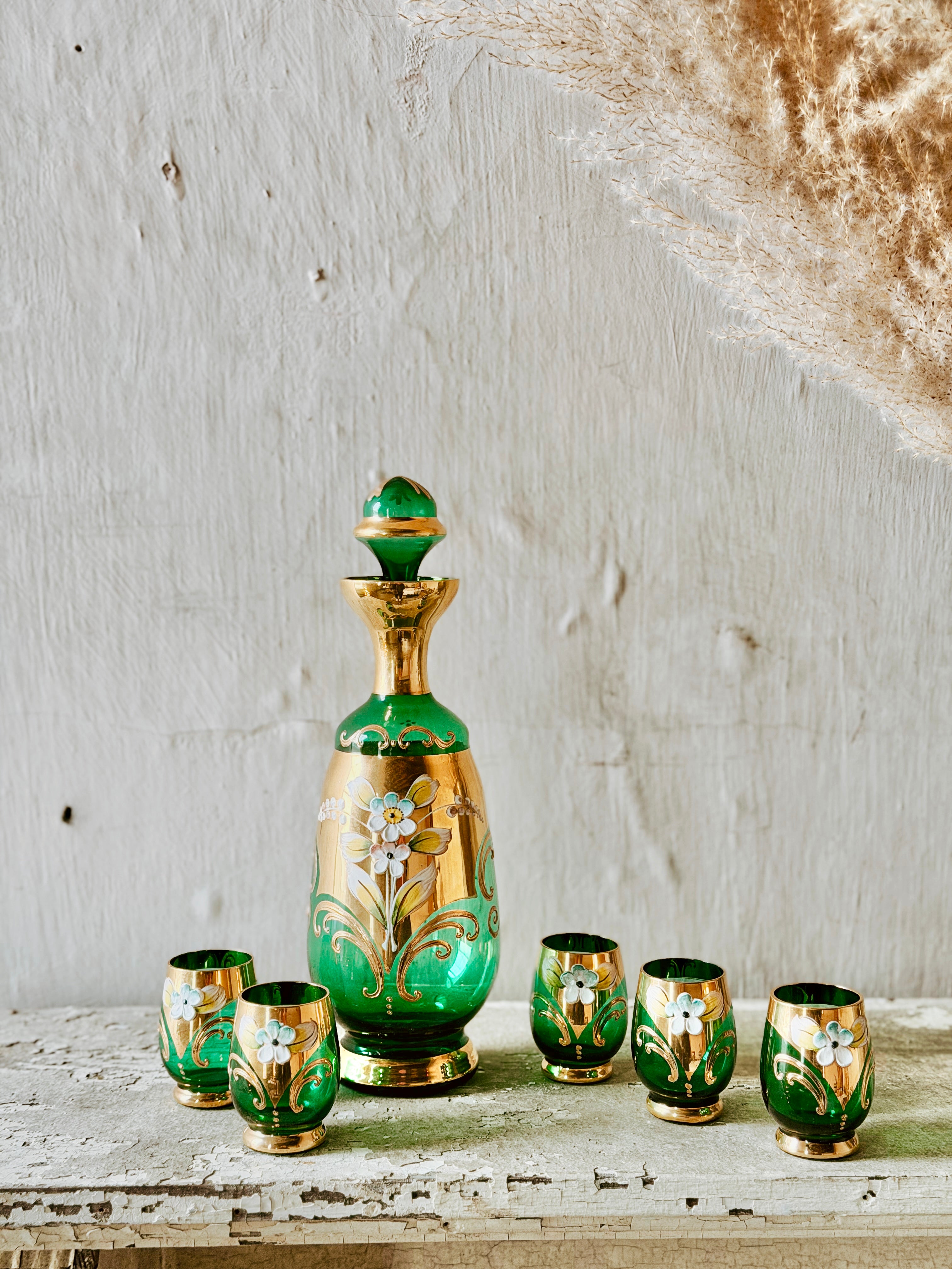 Add color to your next gathering with this stunning vintage emerald Italian cocktail set! History + Style Collide!
