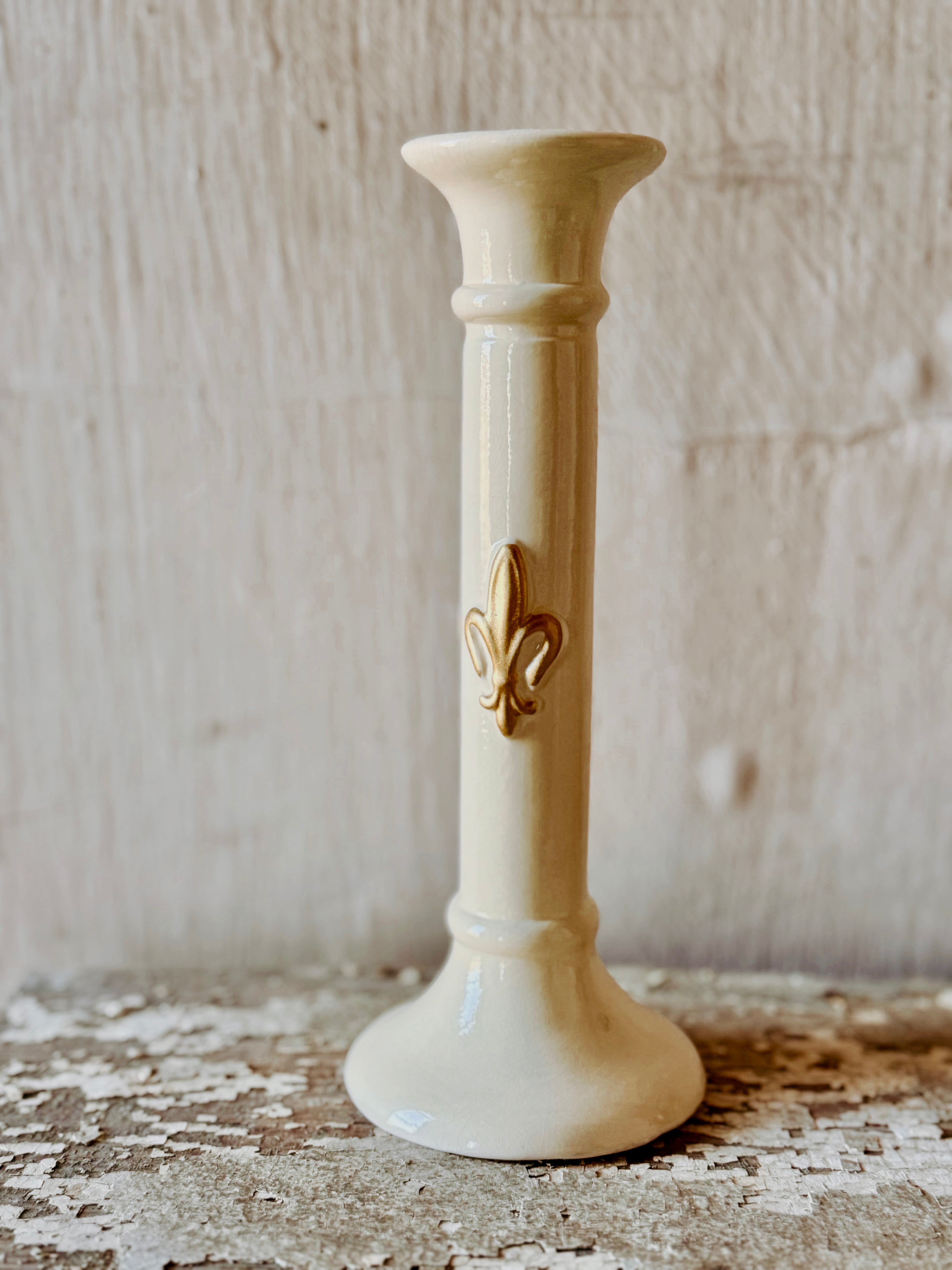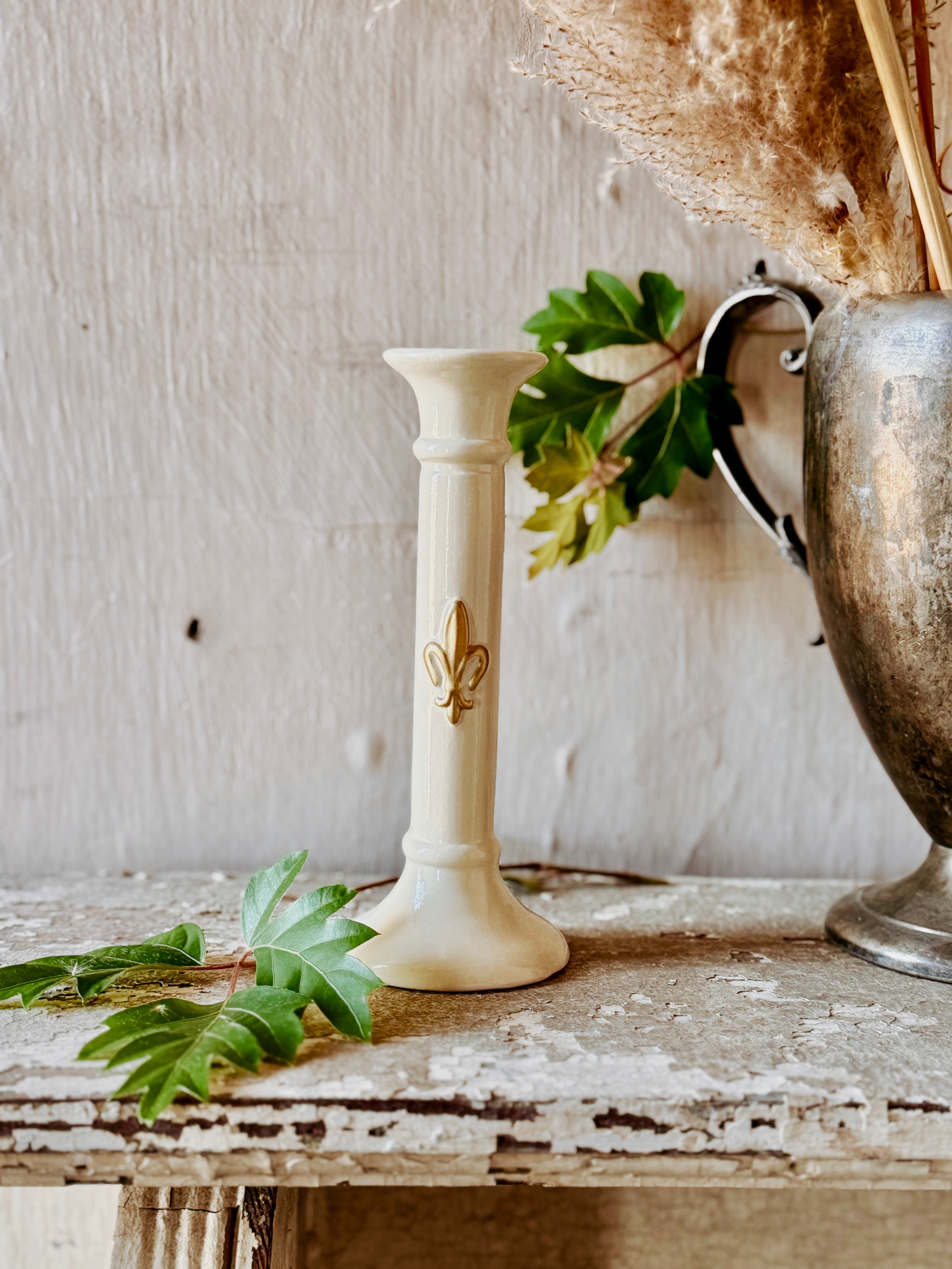 Patina Vie Vintage English Fleur De Lis Single Candlestick