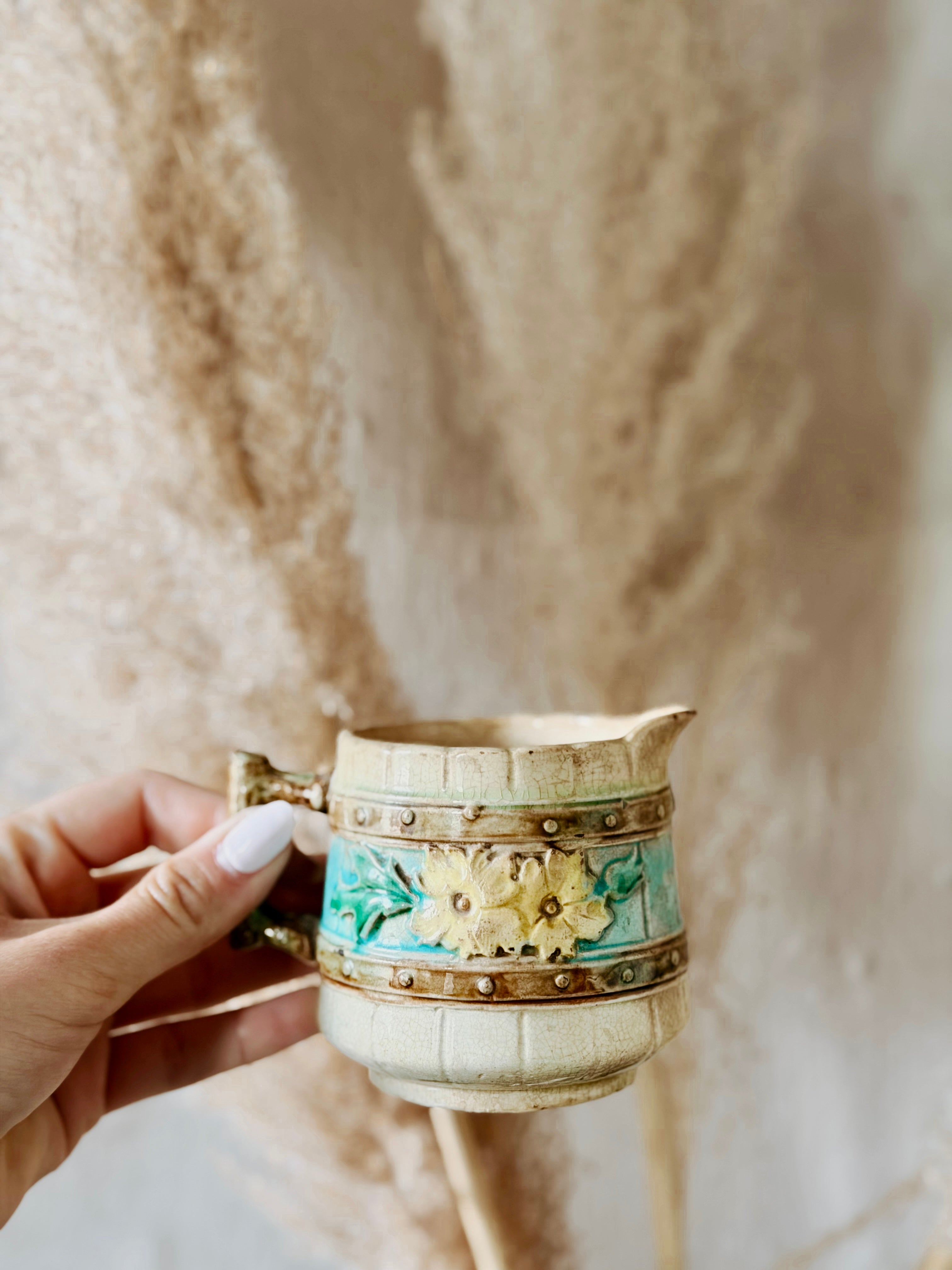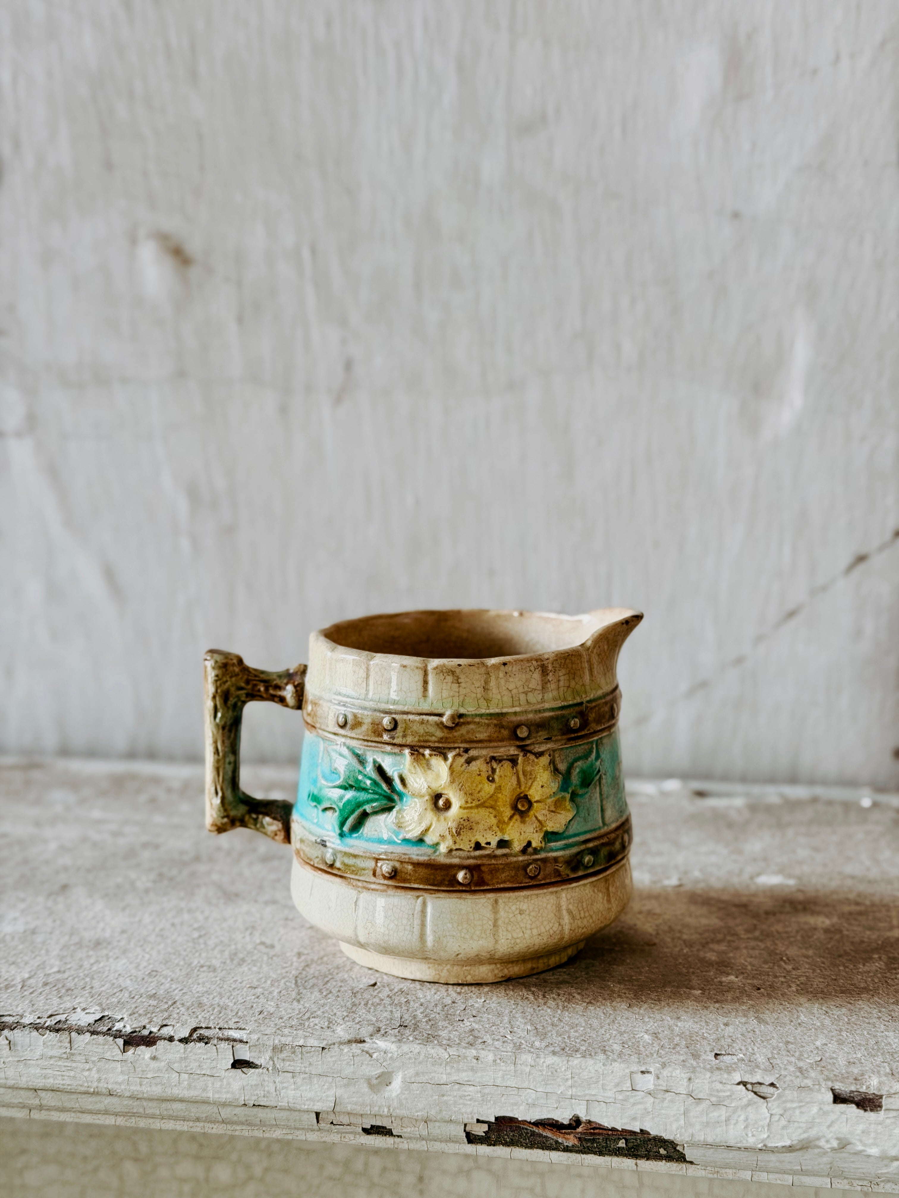 Patina Vie Vintage Petite Majolica Floral Creamer Pitcher