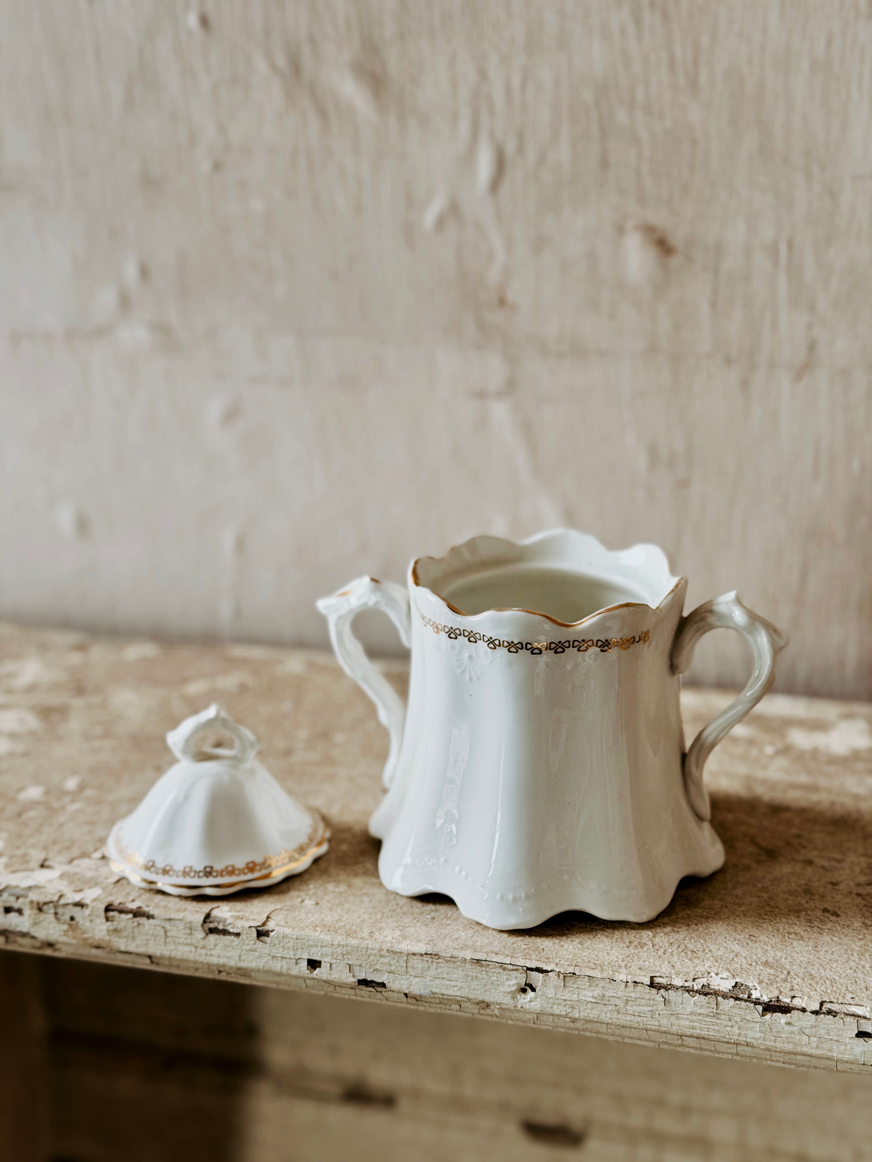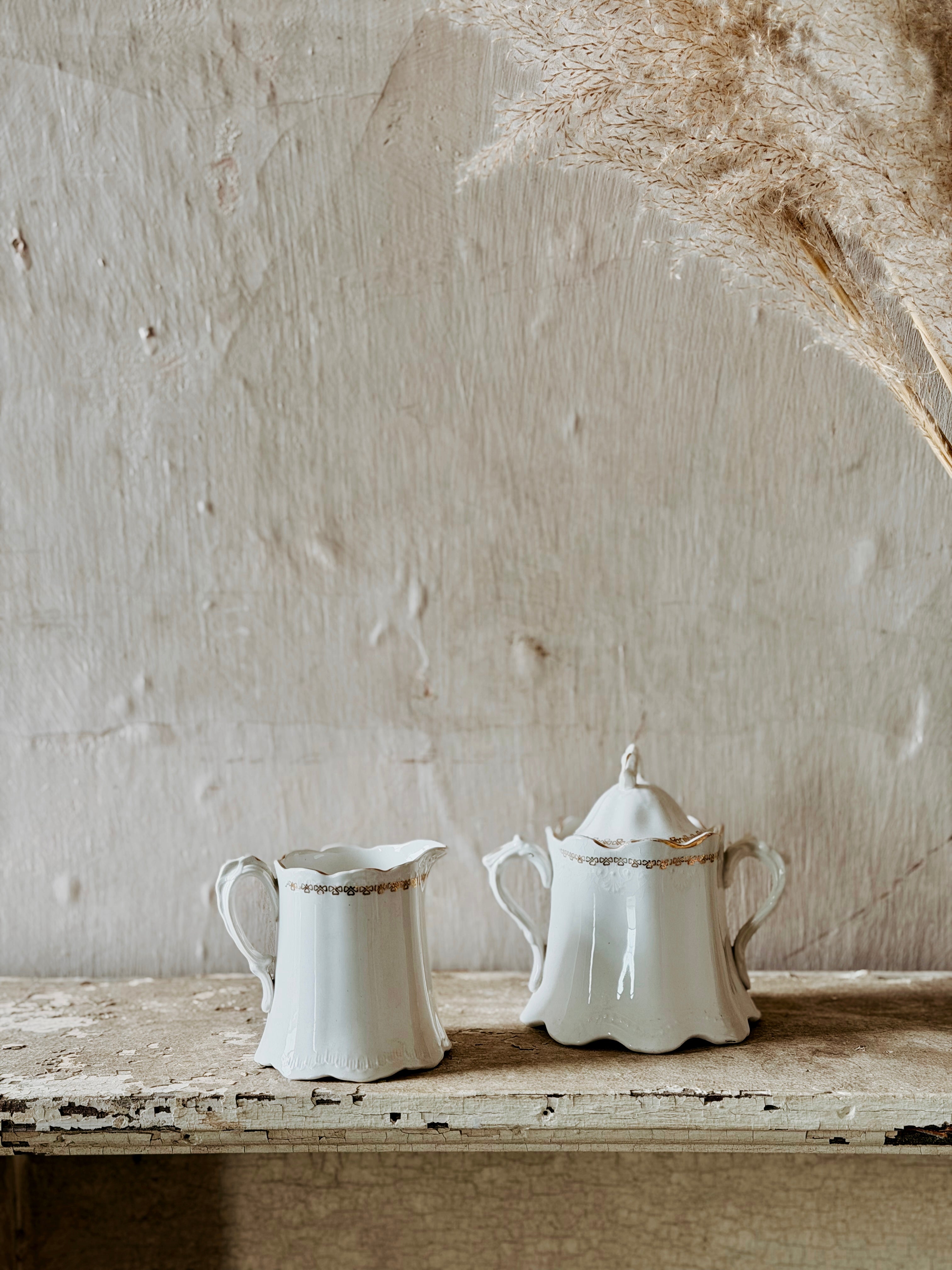 Patina Vie Vintage White & Gold Creamer + Sugar Set